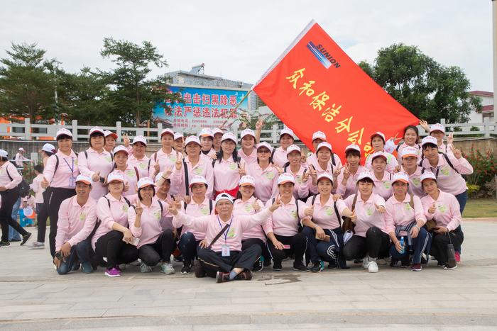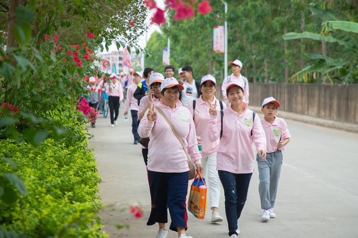 接着,公司董事长、总经理黎广贞和党委书记徐少智为各领队授队旗,全体队员齐声高唱《众和之歌》,歌声嘹亮,响彻全场,引得周围市民纷纷驻足观看。随着公司董事长、总经理黎广贞铿锵有力的一句“向快乐出发,向健康出发,向幸福出发”,徒步活动正式开始。
