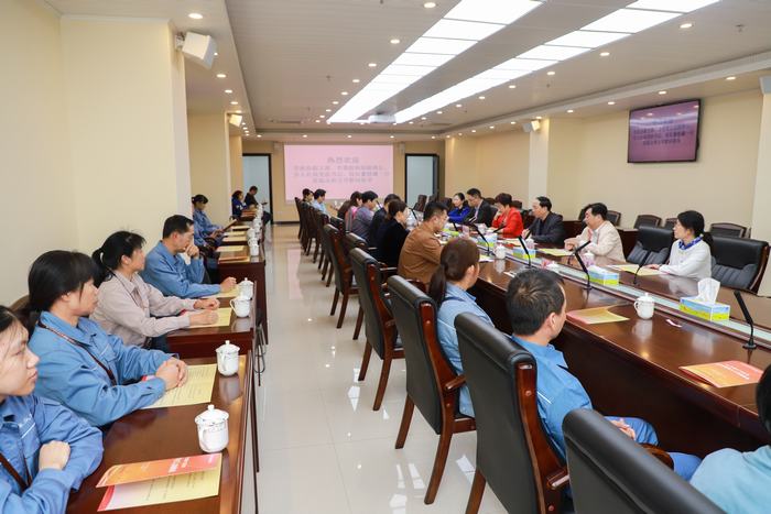 慰问组人员与公司召开异地务工人员代表座谈会。会上,公司董事长、总经理黎广贞对慰问组一行送来温暖表示了衷心感谢,他介绍了公司发展情况、企业文化建设等。公司部分异地务工人员谈了他们工作、学习、生活等情况,以及工作感受和意见建议。当了解到公司在抓生产促发展的同时,非常注重企业文化建设,令异地务工人员很有获得感、幸福感时,董晓璐高兴地勉励企业要继续做大做强,让职工享受到更多的发展成果,同时希望外来务工人员要发扬主人翁精神,积极为企业、为茂名的发展做出更大贡献。