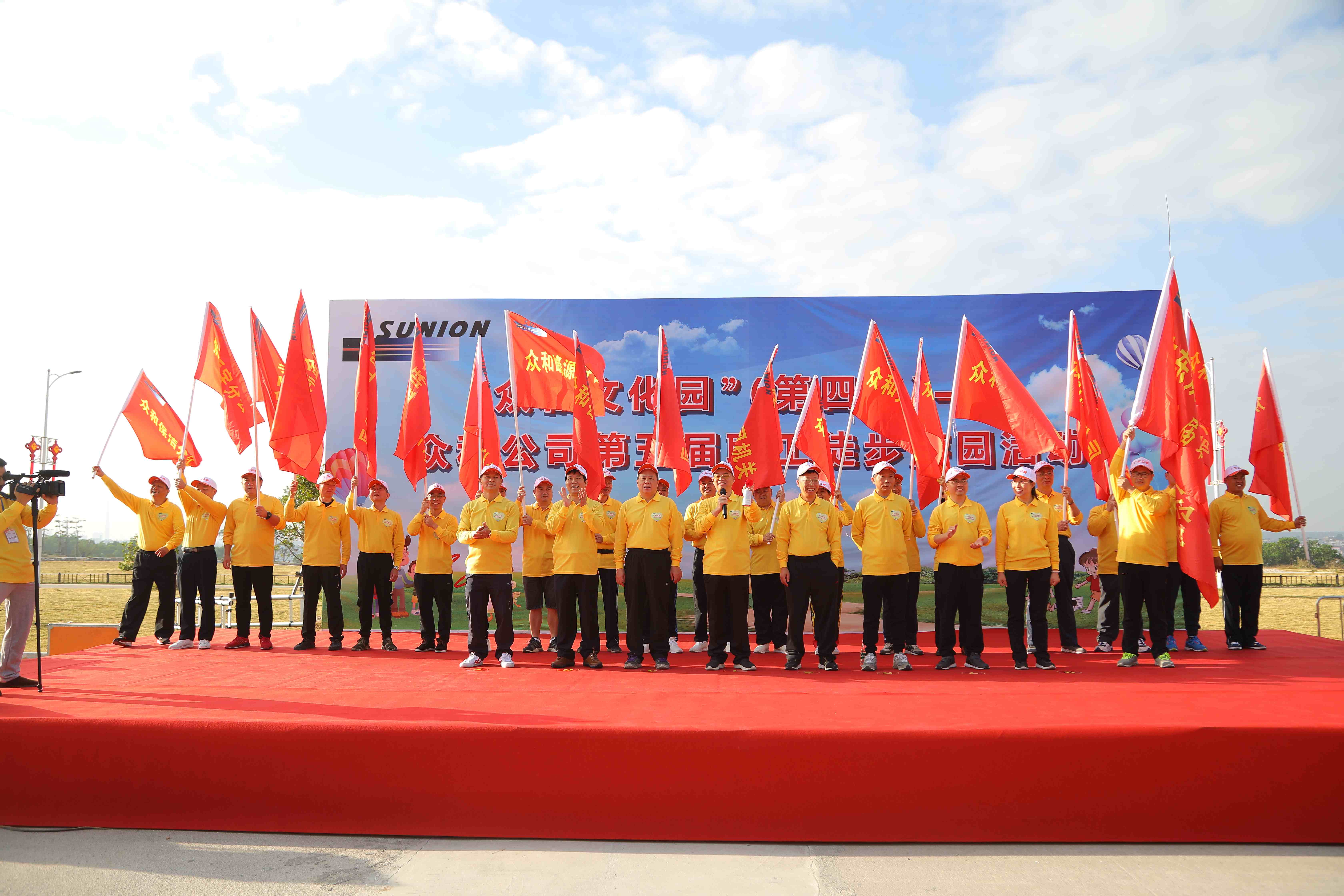 2019年12月14日,“众和文化园”(第四场)——众和公司第五届职工徒步游园活动在露天矿生态公园举行,公司1700多名职工及其家属参加了这次活动。本次徒步游园活动以露天矿博物馆为起点和终点,环绕露天矿生态公园东湖,全程约10公里。当天上午8时20分,在博物馆门前广场举行了简单隆重的徒步游园活动启动仪式。随着公司董事长、总经理黎广贞一声鸣笛,徒步队伍浩浩荡荡向着“好心湖”出发。职工们暂时忘却忙碌的工作,与家人、同事一起享受徒步活动带来的欢乐。一路上,大家迎着温暖的朝阳,呼吸着清新的空气,脸上洋溢着幸福的笑容,迈开轻盈的步伐前进。或是同事们结伴同行,或是一家大小齐出动,或是情侣挽手漫步而行,场面温馨其乐融融。冬日的露天矿生态公园依然繁花绽放,水天一色,美丽的风景让人心旷神怡。蓝天、白云、红花、碧水与黄色上衣的徒步队伍相互辉映,构成一幅幅美丽的画卷,大家频频停下步伐拍照定格美好的瞬间。一时间,公司职工的朋友圈被徒步活动刷屏。