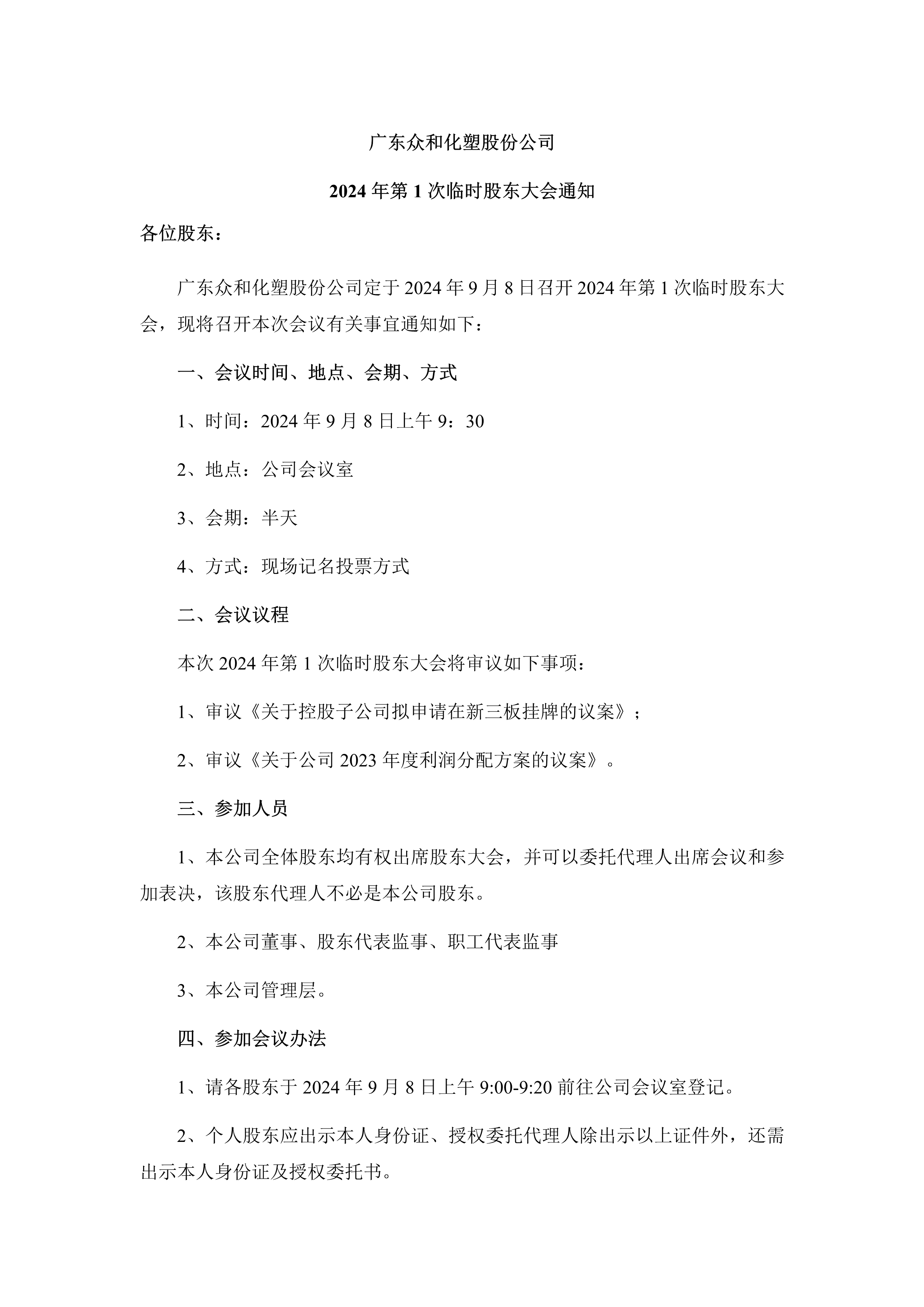 16877太阳集团 2024年第1次临时股东大会通知